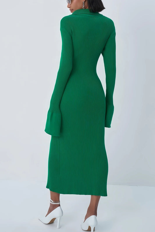 Strikdetail Midi Jurk met Lange Mouwen β Elegante Look voor Elke Gelegenheid