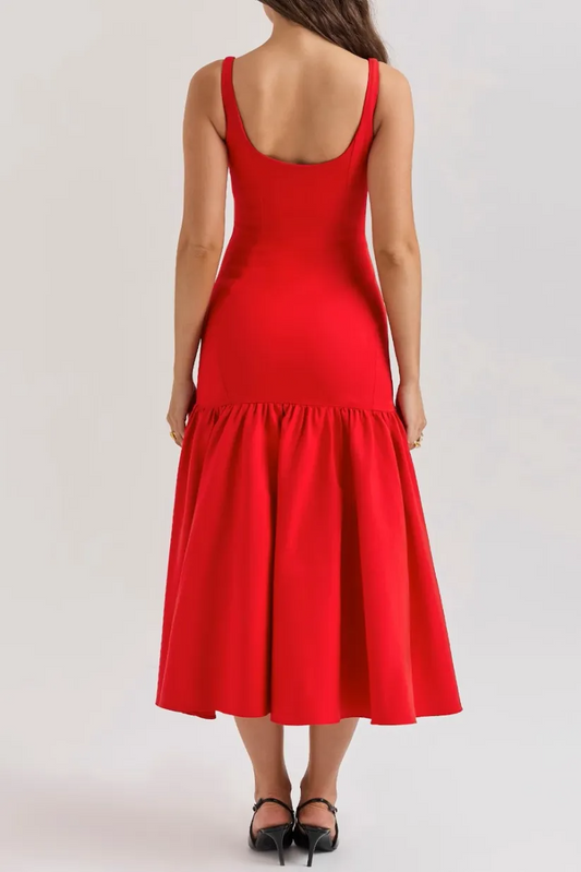 Eveline - Charmante Mouwloze Midi Jurk met Ruches