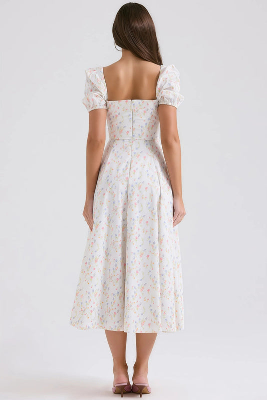 Liselotte - Vlotte Katoenen Midi-Jurk met Bloemenprint en Pofmouwtjes