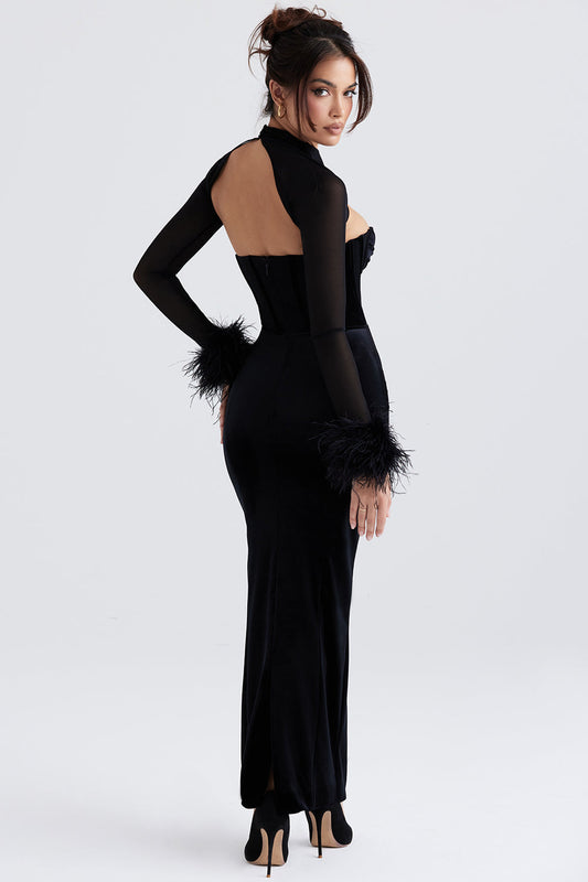 Juliette - Zwarte Fluwelen Korset Maxi Jurk