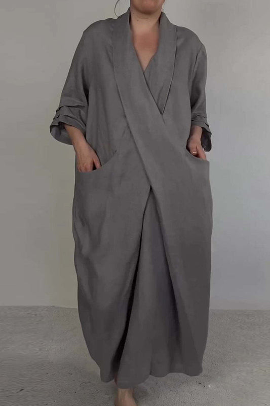 Mila - Casual Effen Kleur Lange Jurk met V-Hals en Pocket